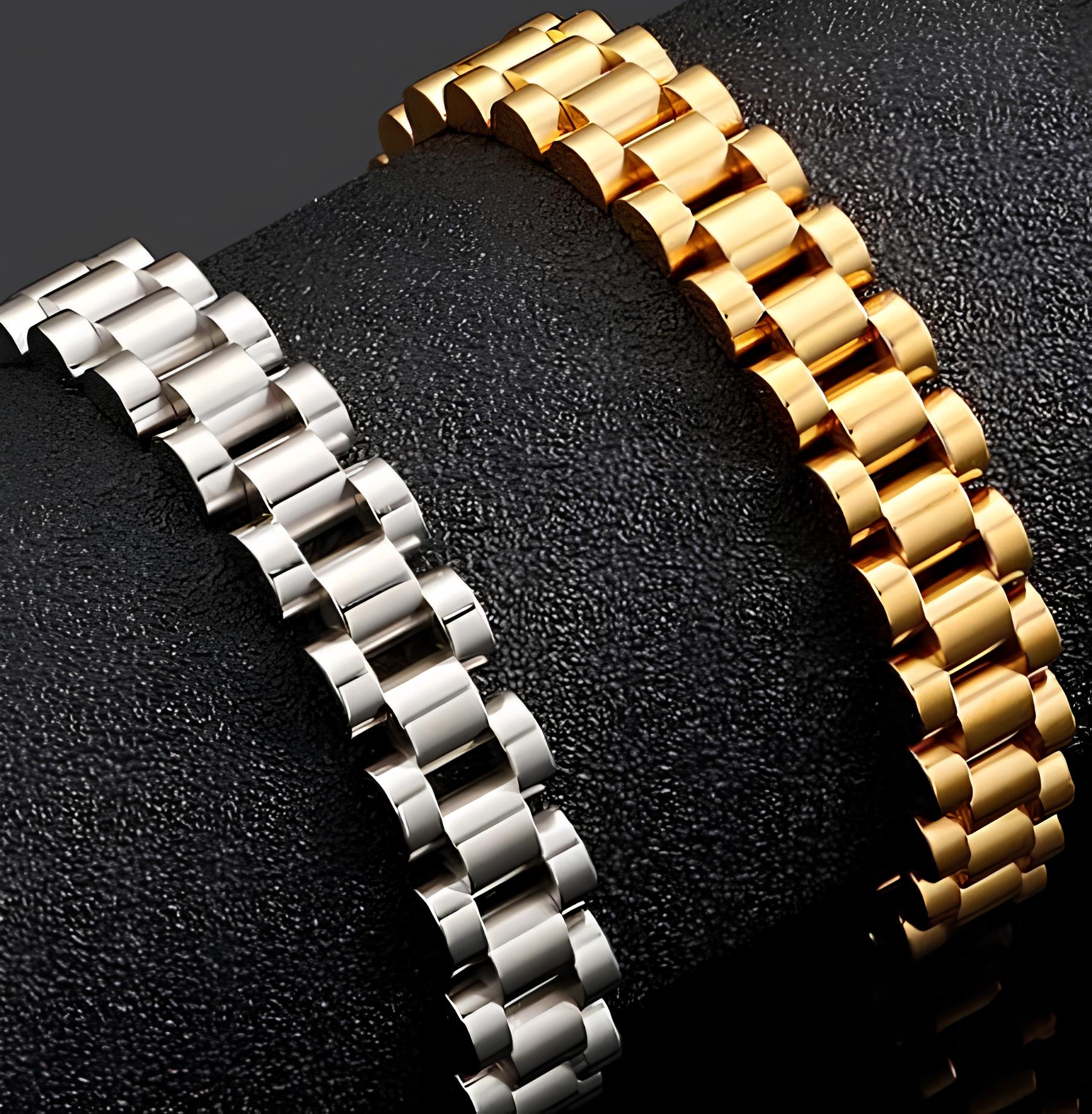 Upgrade your style with this premium stainless steel bracelet, designed for elegance and durability. Featuring a bold yet sophisticated design, this bracelet is available in two classic colors – gold and silver. Its high-quality polished finish ensures a sleek and stylish look, perfect for both casual and formal occasions. With a comfortable fit and a timeless appeal, this bracelet makes an excellent gift for yourself or a loved one.